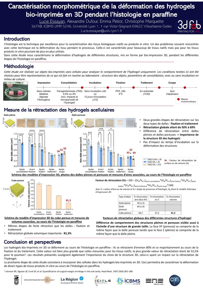 Caractérisation morphométrique de la déformation des hydrogels bio-imprimés en 3D pendant l’histologie en paraffine